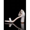 Women's Pearl-Embellished Block Heel Wedding Sandals – Open Toe Ankle Strap Bridal Heels for Outdoor & Garden Weddings
