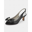 Champagne Satin Bridesmaid Slingback Heels – Peep Toe Bow Wedding Shoes, Rhinestone Brooch Kitten Heel Dress Pumps for Bridal Party, Ceremony, Reception, Prom & Formal Events