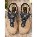 Women's Floral Lace T-Strap Slingback Flat Sandals – Boho Toe-Post Summer Shoes in Multiple Colors for Beach Weddings, Vacation & Daily Wear
