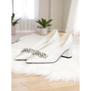 White Crystal Strap Pointed Toe Slingback Flats for Brides – Elegant Satin Low Heel Bridal & Bridesmaid Wedding Shoes