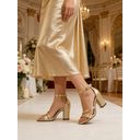 Champagne Gold Block Heel Sandals for Bridesmaids – Metallic Ankle Strap Open Toe Wedding Heels, Chunky Heel Dress Shoes for Bridal Party, Prom, Formal Evening & Party