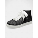 Women's Ivory Lace Wedding Sneakers with Satin Ribbon Laces and Rhinestone Heart Charm – Comfortable Bridal Shoes for Weddings |