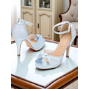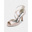 Women's White Satin Bridal Heels – Cross-Strap Peep-Toe Stiletto Wedding Shoes for Bride |
