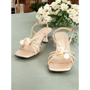 Gold Floral Low Heel Sandals – Vintage Open-Toe Wedding Shoes for Women with Pearl Accents |