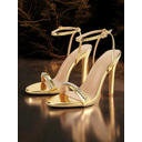 Women's Gold Rhinestone Ankle Strap Stiletto Sandals – Elegant Evening Party & Banquet Wedding Guest High Heels |