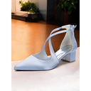 White Bridesmaid Heels for Women – Pointed Toe Low Block Heel Wedding Shoes with Cross Ankle Strap, Elegant Bridal Party Pumps |