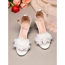 Women's White Flower-Embellished Block Heel Sandals - Comfortable Wedding Shoes with Ankle Strap, Bridal Footwear, Perfect for Weddings and Special Occasions |