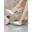 Pearl-Embellished Bridal Heels for Bride – Elegant White Slingback Wedding Shoes – Pointed-Toe Stiletto High Heels |