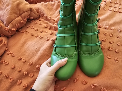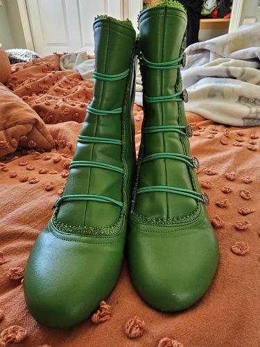 These are super cute! I was afraid they might not fit a around my big calves, but no problem there at all. They held up through my dancing witch event and didnt hurt my feet. I got a lot of compliments on them, too! The only thing I would change about them is that they are a little wide around the ball of the foot where Im pointing. I love them though! Oh, and delivery took 21 days. Literally got them the day before the event, I was so worried. These are super cute! I was afraid they might not fit a around my big calves, but no problem there at all. They held up through my dancing witch event and didnt hurt my feet. I got a lot of compliments on them, too! The only thing I would change about them is that they are a little wide around the ball of the foot where Im pointing. I love them though! Oh, and delivery took 21 days. Literally got them the day before the event, I was so worried.