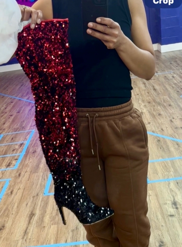 These high party boots feature stunning gradient sequins that create a dazzling effect, perfect for making a statement on the dance floor. These high party boots feature stunning gradient sequins that create a dazzling effect, perfect for making a statement on the dance floor.