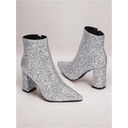 Women's Silver Glitter Ankle Boots with Block Heels, Sparkling and Chic for Parties and Special Occasions |