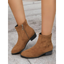 Women's Casual Faux Suede Ankle Boots with Side Zipper and Low Block Heels – Comfortable Vintage Booties for Everyday Wear |