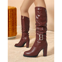 Women's Burgundy High Heel Knee-High Boots with Buckle Straps – Chic and Elegant Footwear for Winter and Party Occasions |