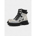 Women's Rhinestone Combat Platform Boots - Sparkly Lace-Up Chunky Sole Ankle Boots for Party, Night Out & Festival Fashion |