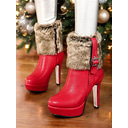 Women's Red High Heel Fur Trim Christmas Boots with Platform and Buckle Detail – Festive Winter Holiday Shoes |