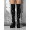Women's Black Faux Leather Over-the-Knee Platform Boots with Chunky High Heels - Bold Nightlife Footwear for Clubbing and Party Looks |