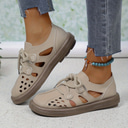 Women's Vintage Lace-Up Flat Shoes – Retro Hollow-Out Suede Casual Ballet Flats for Daily Wear
