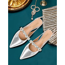 Women's Silver Rhinestone Pointed Toe Flats – Elegant Slingback Bridal & Evening Shoes