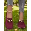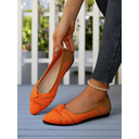 Women's Orange Wide Toe Flyknit Slip-On Loafers – Comfortable Breathable Casual Flats with Metal Chain Detail, Ideal for Shopping, Work and Garden Strolls