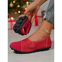 Women's Red Flexible Foldable Flats with Soft Sole and Slip-On Comfort Design, Lightweight Casual Shoes for Christmas, Work, Travel & Everyday Wear
