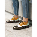 Women's Multicolor Brogue Oxford Shoes with Chevron Pattern and Contrasting Faux Leather Panels – Vintage-Inspired Lace-Up Flats |