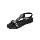 Elegant Black T-Strap Sandals for Women – Rhinestone Embellished Summer Sandals, Perfect for Beachwear, Casual Outings and Evening Events |