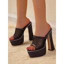Black Mesh Platform High Heels for Women – Peep Toe Studded Gothic Party Sandals |