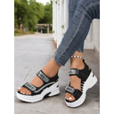 Women's Sporty Platform Sandals with Mesh Straps and Rhinestone Accents – Comfortable Wedge Design for Casual Wear, Travel and Outdoor Activities