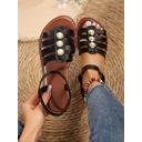Black Gladiator Sandals with Imitation Pearl Embellishments for Women – Elegant Summer Footwear |