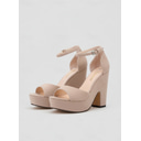 Women's Nude Suede Platform Block Heel Sandals - Chunky Ankle Strap Heels for Nightlife Parties and Club Outfits |