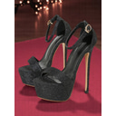 Women's Black Glitter Platform Stiletto Heels - Peep-Toe Ankle Strap Party Shoes for Nightlife and Club Events |