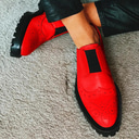 Men's Red Brogue Faux Leather Slip-On Shoes - Vintage Design with Elastic Gussets and Rugged Sole for Formal and Casual Occasions