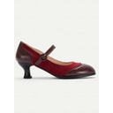 Vintage-Inspired Burgundy & Brown Leather Mary Jane Heels for Women, Perfect for Work and Special Occasions