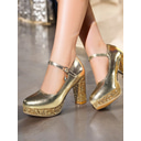 Women's Gold Glitter Block Heel Mary Jane Pumps – Sparkly Platform Party Shoes for Weddings and Formal Events
