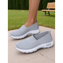 Women's Beige Flyknit Slip-On Comfort Sneakers – Lightweight Breathable Walking Shoes for Park, Errands and Everyday Wear |