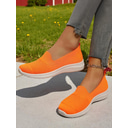 Women's Bright Orange Flyknit Slip-On Sneakers – Lightweight Breathable Walking Shoes for Daily Casual and Travel |