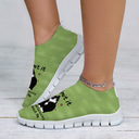 Women's Green Slip-On Sneakers with Funny Cat Printed, Perfect for Everyday Wear |