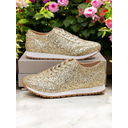 Women's Gold Glitter Lace-Up Sneakers with Comfortable Sole, Lightweight Design and Trendy Style for Parties, Casual Outfits and Festive Occasions |