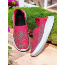 Women's Rhinestone Embellished Slip-On Sneakers with Mesh Upper and Chunky Sole - Trendy Nightlife Party and Clubbing Shoes for Ladies |