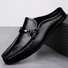 mocasini maro pentru bărbați, cu cataramă metalică, pantofi casual din piele artificială pentru purtarea de zi cu zi