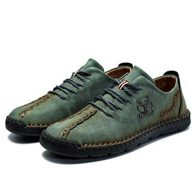 pantofi sport verzi pentru bărbați, cu șireturi, din piele artificială, cu talpă cusută manual – pantofi de mers ușori și confortabili pentru purtarea de zi cu zi