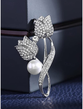 Broșă pentru femei cu imitație de diamant din aliaj – design floral elegant în aur și argint, perfectă pentru nunți și ocazii speciale
