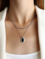 lant dublu dama multistratificat cu colier cu pandantiv dreptunghiular negru - poate fi purtat separat, bijuterii elegante de dama, potrivite pentru ocazii formale si casual