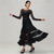 Rochie de dans de salon pentru femei, cu volane stratificate, plasă, mânecă lungă, elegantă, pentru concurs, tango, vals, foxtrot - neagră