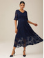 rochie de nunta de dama rochie simpla rochie midi dantela sifon mozaic casual decolteu cu maneca 3/4 rochii de cocktail rochii formale culoare albastra