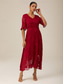 Pentru femei Rochie Maxi Rochie împachetată Rochie A line Elegant Oficial Invitat la nunta Petrecere cu cocktail Fit regulat Simplu Manșon scurt În V Roșu Vin Vară