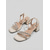 Sandale damă cu toc bloc, culoarea șampanie, și bareta la gleznă cu fundă, pantofi eleganți cu vârful deschis pentru cocktailuri, evenimente de seară &nunți