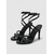 sandale de damă cu toc înalt stiletto de culoare neagră – design cu vârf deschis cu imprimeu șarpe și curea la gleznă, pantofi de petrecere eleganți pentru seară și evenimente formale