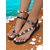 sandale gladiator cu împânzire de damă – sandale plate cu bretele negre cu detalii cu nituri pentru ținute de vară, casual și de plajă