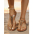 Sandale elegante de vară pentru femei, model boho, maro, cu strasuri, și elastic în spate, pentru ieșiri casual, excursii la plajă și călătorii de vacanță.